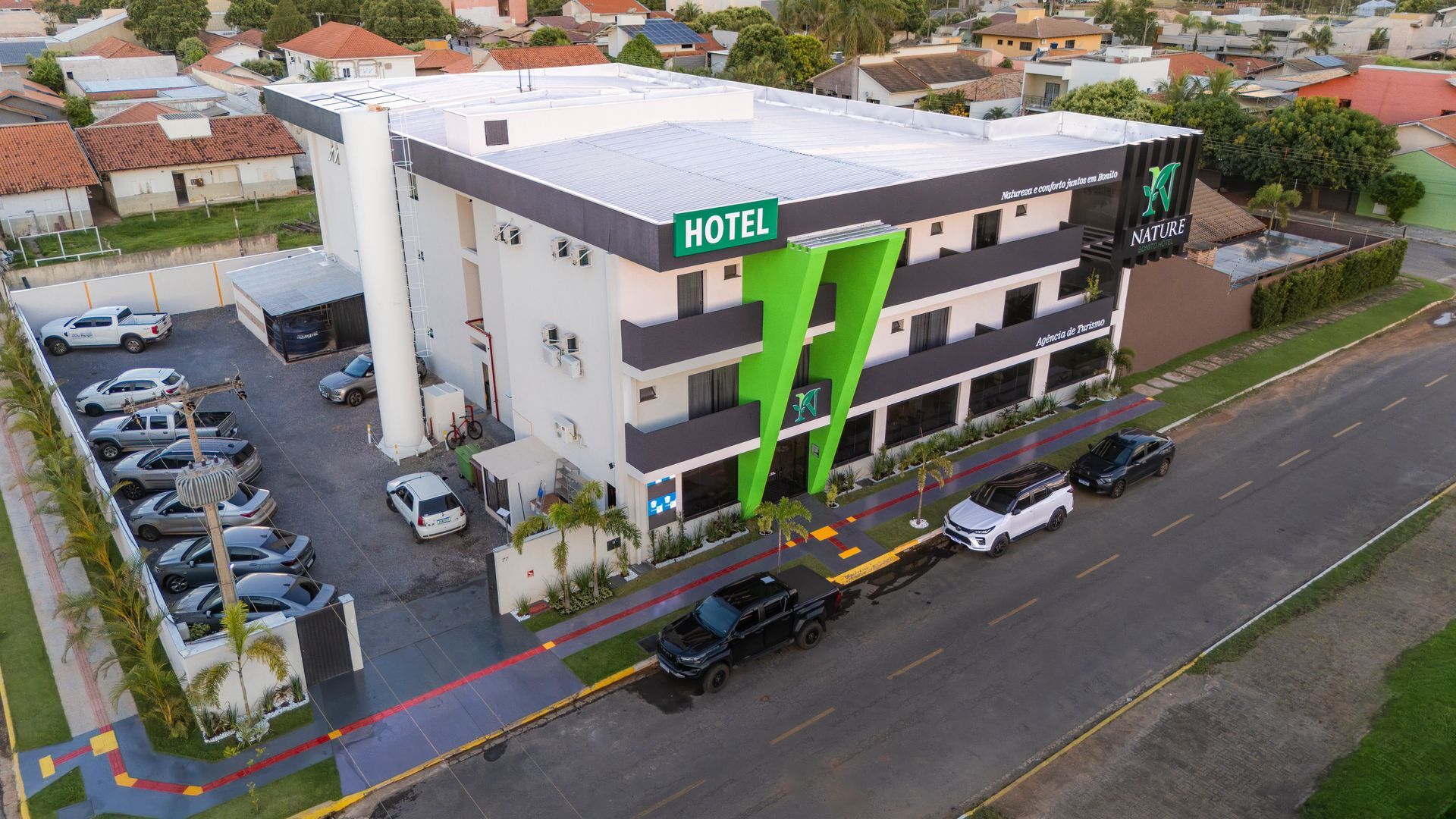 Localizado em Bonito – MS, o Nature Bonito Hotel combina conforto, modernidade e praticidade em um só lugar. Ideal para famílias, casais ou grupos, o hotel conta com piscina, área de café da manhã, estacionamento gratuito, Wi-Fi em todas as áreas, além da tradicional hospitalidade sul-mato-grossense.